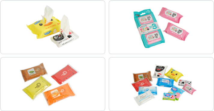 工作流程:原紙氣脹中心開卷→自動(dòng)張力→原紙自動(dòng)糾編系統(tǒng)→折疊→定量加液→定長(zhǎng)度切斷→橫向?qū)φ邸讯鈹?shù)片→單雙疊并線輸送→包裝膜開口貼標(biāo)→制袋→入袋包裝→封口→成品輸出。